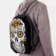 Yellow Rose Sugar Skull on Black Drawstring Bag