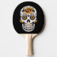 Yellow Rose Sugar Skull on Black Ping Pong Paddle