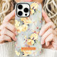 This elegant phone case features a watercolor design of yellow roses complemented by delicate greenery and soft floral accents on a muted blue-gray background. The intricate floral details exude timeless charm, perfect for those who appreciate feminine and sophisticated designs. A customizable nameplate in warm orange adds a personal touch, making this case a stylish and thoughtful accessory for daily use or as a meaningful gift.