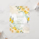 This design features floral elements with soft and gentle yellow roses and bright and shiny lemons with eucalyptus leaves all on a watercolor background. Great for your wedding celebrations!