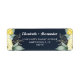 Contemporary wedding return address label featuring yellow roses watercolor illustration and white text over a classic navy blue background.