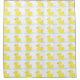 This shower curtain features a pattern of yellow rubber ducks in a circle of water, on a white background.