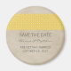 Elegant and chic Rustic Damask Save the Date Magnet featuring a vintage textured paper look background and a flourish damask pattern border in yellow. Easy to customize, simply add your wedding details. Click "Customize It" to find more personalization options.