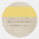 Elegant and chic Rustic Damask Wedding Stickers featuring a vintage textured paper look background and a flourish damask pattern border in yellow. Easy to customize, simply add your wedding details. Click "Customize It" to find more personalization options.