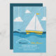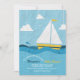 A juvenile, nautical invitation perfect for celebrating birthdays or for a baby boy shower. The "crumpled paper" background features a yellow sailboat in a sea of two-tone blue with jumping fish, seagulls and clouds hanging from a string. (<a href='http://www.freepik.com/free-vector/crumpled-background-with-paper-boat-sailing_1113801.htm'>Designed by Freepik</a>). <br/><br/>The card is easy to customize with your wording, font, font color, paper shape options and choice of six paper types.<br/><br/>Not exactly what you're looking for? All our products can be custom designed to meet your needs at no extra charge.<br/><br/>Simply contact us at askcottonlamb@gmail.com.<br/><br/>Coordinating products available: Just ask us!