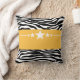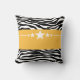 Trendy and modern Sassy Star Zebra Pillow featuring a chic black and white zebra print background and a bold yellow border adorned with a fun star motif. This girly design may be customized with the personalized text of your choosing. Click "Customize It" to find more personalization options.