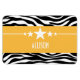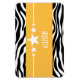 Trendy and modern Sassy Star Zebra Premium Magnet featuring a chic black and white zebra print background and a bold yellow border adorned with a fun star motif. This girly design may be customized with the personalized text of your choosing. Click "Customize It" to find more personalization options.