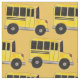 Fabric features an original illustration of a yellow school bus, printed on a yellow background.