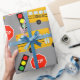 Yellow School Bus Stop Sign Traffic Lights Pattern Wrapping Paper