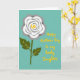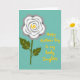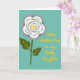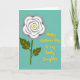 This card features a calm teal background that sets a gentle, affectionate mood ❤️. On the left, a large flower resembling a rose is drawn with layered white petals shaded with soft gray, giving it simple depth. A bright yellow spiral sits at the flower’s center, like a sunny glow that feels warm and caring. Below it, an olive-green stem drops downward with two broad leaves, each traced with thin yellow veins that echo the flower’s center. On the right side, the message “Happy Mother’s Day to my lovely Daughter” appears in a loose, hand-drawn style, written in bright yellow and stacked to fit the open space. The balance between the flower and the words suggests a close bond, like a quiet exchange between family members 🌼. The yellow details repeat across the design, tying the flower’s center, leaf lines, and lettering together against the teal field. The petals are positioned left, the text is placed right, and the yellow spiral stands out sharply against the pale bloom.