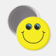 This magnet features a smiling yellow emoji face with blue eyes.