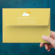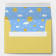 Send out your invitations and cards in style with this cute custom yellow envelope that features a hand drawn repeating pattern with smiling suns and a blue cloudy sky on the inside as well as a custom printed return address on the top flap. The return address is customizable. To edit the text, click "personalize this template". There is a cloud and sun adorning the back above the return address printed in a white font.