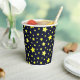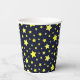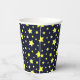 Paper cups featuring a yellow stars pattern against a dark blue center background. They make great cups for any celebrations.