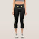 Cool Solid Black Hight Waisted Capris Leggings featuring a set of six yellow stars side stripes. The high waist is also decorated with s set of six yellow stars going around it.