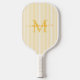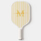 Serve up style on the court with this personalized yellow striped pickleball paddle. Featuring a soft yellow and white striped background, this chic design is customized with your monogram initial and name in a graceful script font—creating a timeless, feminine look that feels both stylish and refined.