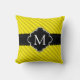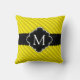 Yellow Stripes Pattern Black Custom Monogram Throw Pillow