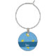 Yellow submarine and fish on blue wine charm