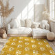 Brighten up your space with this vibrant yellow sunburst pattern rug, perfect for adding a cheerful boho touch to any room. The repeating sunburst design brings a lively energy, while the monogram adds a personalized element that makes this rug uniquely yours. The sunny yellow tone is ideal for creating a warm, inviting atmosphere, seamlessly fitting into bohemian, southwestern, or modern interiors. Whether in a living room, bedroom, or entryway, this rug's bold color and geometric pattern will make it a standout piece in your decor.