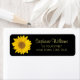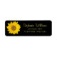 A bright yellow sunflower with a combination on name written on script and address in simple font in capitals on black background..