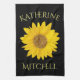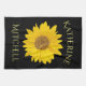 Yellow Sunflower Custom Name Black Kitchen Towel