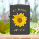 A close-up photograph of a bright yellow sunflower and templates for first and last name on transparent background.