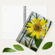 A simple yellow sunflower blooming in a country cottage garden against a pattern of black wrought iron and pale blue gives this Planner its rustic floral charm. It is bright and cheerful and the reverse side features a green bud with a sunflower in the background against light blue with personalized Initials.