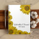 The pretty Yellow Sunflower Edge Wedding Spiral Notebook can be personalized to create a one of a kind advice book for the newlyweds or guest book for their summer or fall marriage ceremony. This classy custom flowery nuptial note book features yellow sunflowers adorning the corners with a white background.