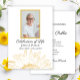 Invite guests to remember your loved-one after their passing with the pretty Yellow Sunflower Graphic Celebration of Life Invitation. This classy and cheerful custom flowery funeral memorial tribute invite features a digitally enhanced floral photograph of a yellow sunflower blossom with a bright white background. Personalize it with a picture, name of the deceased and birth and death dates. Available as a printed invitation for mailing and/or as a digital download for easy sharing digitally online.