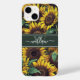 Rustic Sunflower Pattern with Script Monogram Phone Case. Unique and trendy sunflower with yellow and green sunflower pattern, with a custom monogram template and elegant calligraphy script name template. This pretty farmhouse inspired phone cover would make a thoughtful gift for mom, daughter, grandma, etc.