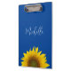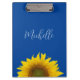 Yellow Sunflower Monogram Elegant Blue Clipboard