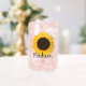 Personalize this sunflower glass can with a custom name. A cute and girly design perfect for summer iced coffee drinks, water or your favorite soda.