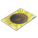 This awesome notebook features a detailed close-up photograph of a pretty yellow Sunflower. The photograph was taken using macro photography and shows a beautiful contrast between the pale yellow petals and the big dark central seed head of the flower.