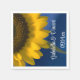 Customize the pretty Yellow Sunflower on Blue Wedding Paper Napkins with the personal names of the bride and groom and their summer or fall marriage ceremony and reception date. These elegant custom sunflower wedding disposable napkins feature a close up floral photograph of a yellow sunflower blossom with a blue background.