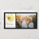 Send thoughts of appreciation and gratitude after your summer or fall engagement party, bridal shower or marriage ceremony and reception with the pretty Yellow Sunflower on White Watercolor Wedding Thank You Photo Card. This elegant custom flowery wedding thank you photocard features a digitally painted watercolor floral photograph of a yellow sunflower on a green stem in a glass vase with a white background.