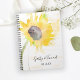 Customize the pretty Yellow Sunflower on White Watercolor Wedding Spiral Notebook with the personal names of the bride and groom and their summer or fall marriage ceremony date to create a one of a kind planner, guest book or advice book. This classy customized flowery nuptial note book features a digitally painted watercolor effect floral photograph of a yellow sunflower blossom on the stem in a glass vase with a bright white background.