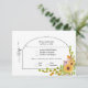 This beautiful wedding response card is decorated with a vibrant yellow watercolor sunflower and leaf design in the bottom right corner of an elegant arch frame. The RSVP is artfully written in a stylish script font. The reverse side of the card is a bright yellow hue. It is the perfect way to elegantly provide your guests with the opportunity to RSVP for your wedding.