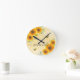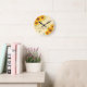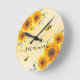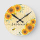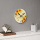 Yellow sunflowers bees rustic monogram script round clock