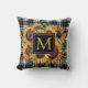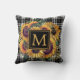 Yellow Sunflowers Black White Plaid Monogram Throw Throw Pillow