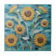Yellow Sunflowers Faux Mosaic Aqua Blue Ceramic Tile