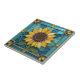 Yellow Sunflowers Faux Stained Glass Aqua Blue Ceramic Tile