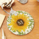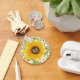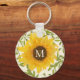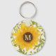 This simple yellow sunflower personalized keychain has a hand drawn watercolor flower on a beige background and an editable monogram. Cute and useful, too!