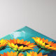 Wall art with a gorgeous illustration of a yellow sunflowers in a pretty yellow vase done in an impasto style and a teal or turquoise background.