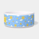Feed your dog or cat with this cute yellow sunshine and clouds patterned personalized pet bowl! This cute yellow sunshine and clouds pattern personalized pet food bowl is fun and playful with it's cute and textured sunshine and cloud repeating pattern. You can customize this pet food bowl and add your pets name by clicking "personalize this template". This unique and original cute sunshine and cloud repeating pattern was hand drawn by OhMyStarling! Your pet will enjoy eating or drinking out of this cute blue and yellow patterned food bowl.