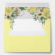 Sunshine yellow envelope with yellow and cream colored watercolor floral inside. Editable return address on back flap.