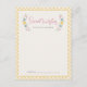 Created to coordinate with the "Sweet Floral" birth announcement collection, this pretty "Wishes for Baby" card features the phrase "Sweet Wishes for Baby (Name)" framed by a wreath of delicate flowers and leaves. There is also space at the bottom for the friend or family member's name. The design and text is placed over a yellow, hand-drawn gingham pattern. This card is perfect for baby showers, as well as bridal showers and weddings. Other phrase ideas include: "Sweet Wishes for the Bride-to-Be", "Sweet Wishes for the Happy Couple", or "Date Ideas for the Newlyweds".