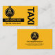 An all yellow taxi colored cover is accentuated by a stripe layer design with the oversize vertical business name "TAXI" on the right. A pair of vertical lines on the left house a gold chauffeur logo you can use with the phone contact and your prestigious name just underneath.
