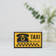 A yellow cover is encapsulated by a black frame. The oversize phone has your prestigious name inside. Beside the phone is the business name "TAXI" which you can change and the phone contact. Near the base is a black checked design.