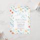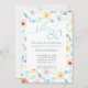 Yellow Teal Floral Elegant Script 80th Birthday Invitation