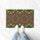 Yellow Teal Red Brown Abstract Modern Boho Tribal Doormat
