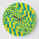 Yellow + Teal Warped Checkerboard Illusion Large Clock